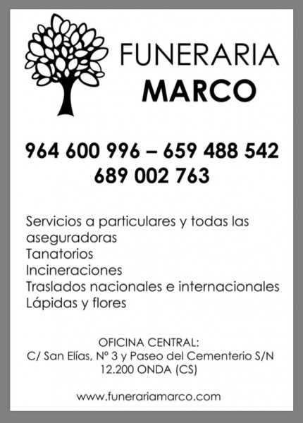 FUNERARIA MARCO, Es una empresa con más de 100 años de experiencia en el sector de los servicios funerarios y que ha sabido adaptarse al paso de los tiempos, por lo que hoy en día es una funeraria de referencia, todo ello avalado por los miles de clientes que tiene por toda la provincia de Castellón. Trabaja siguiendo minuciosamente una política de rigurosa calidad en el servicio ofrecido, caracterizándonos por: